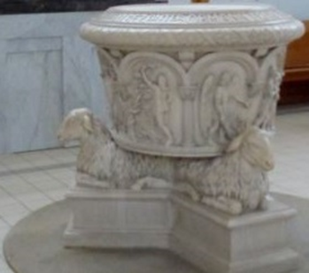 Josef Ailec, Taufbecken, 1908, Naturstein.