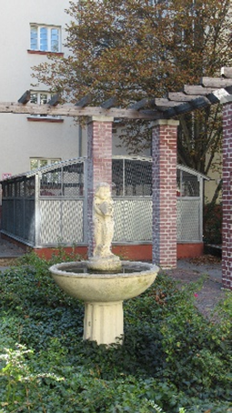 Weitere Begrünungsflächen finden sich darüber hinaus auch im Innenhof, etwa in Form einer Pergola mit Brunnen und einer Nixen-Skulptur von Anton Endstorfer. Leider ist die Anlage nicht mehr im Original erhalten, der Brunnen stand ursprünglich in einem Wasserbecken.