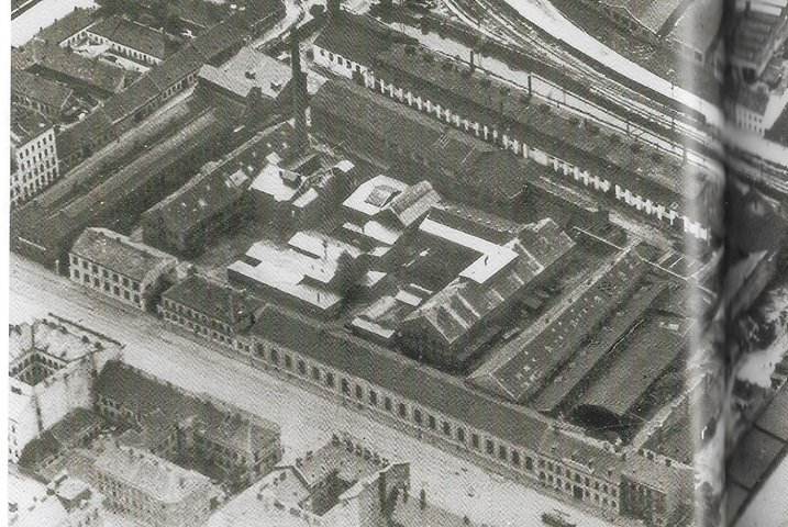 Ehemalige Waggon-Fabrik (Simmering-Graz-Pauker-AG) zwischen Simmeringer Hauptstraße (unterer Bildrand) und Bahntrasse (oberer Bildrand) gelegen.